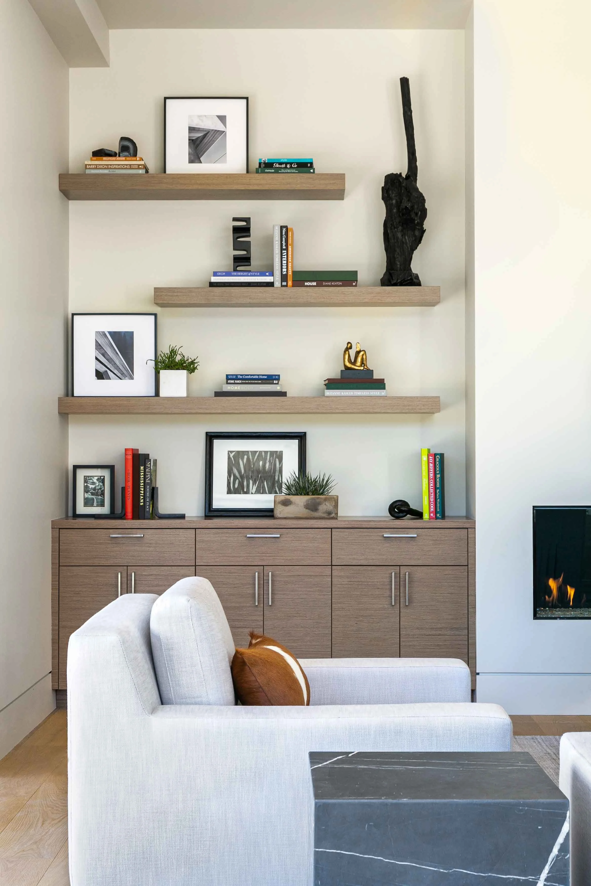 Clean lines provide a structured and minimalist approach, while textures soften the